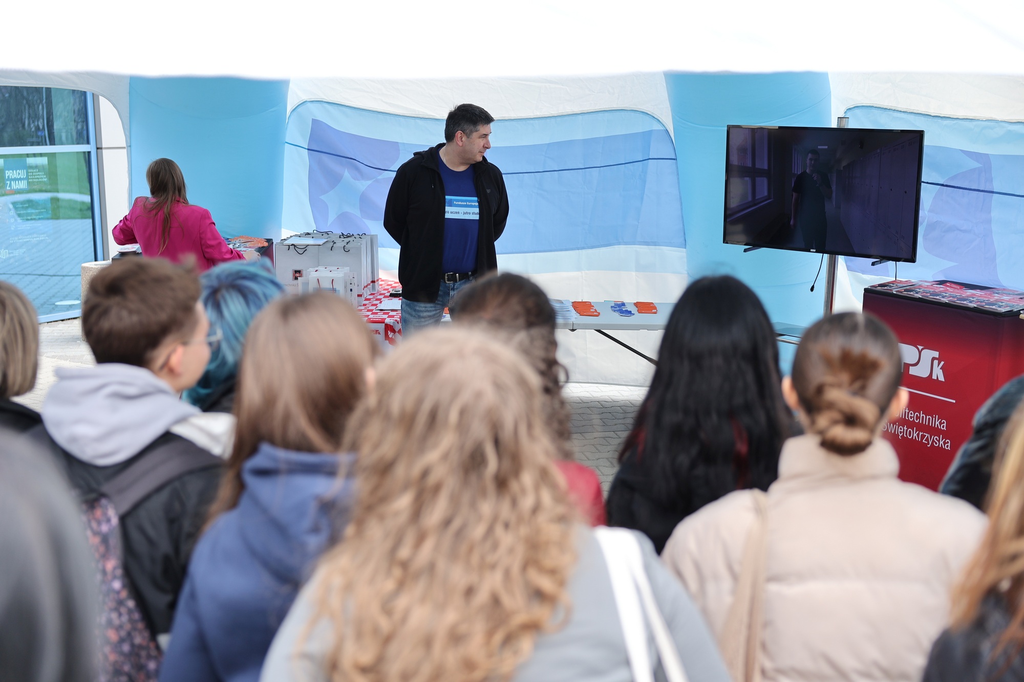 W ramach zadania V projektu, w dniu 15 kwietnia 2025 r. na kampusie Politechniki Świętokrzyskiej odbył się Festiwal Nauki i Techniki projektu „Dziś uczeń – jutro student”, skierowany do młodzieży uczniów szkół średnich.