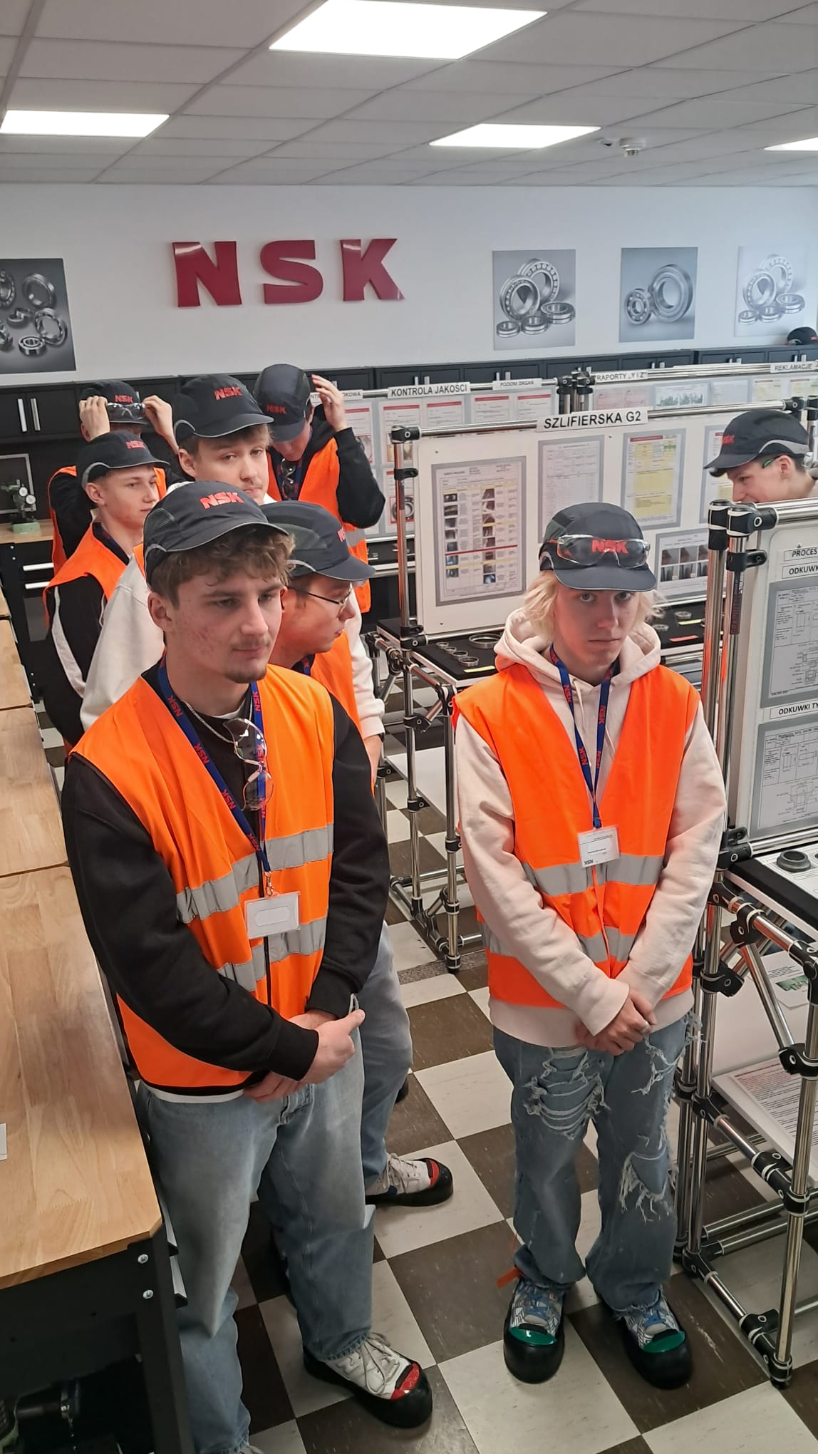 W czasie wizyty uczniowie zapoznali się z profilem firmy, obejrzeli procesy produkcyjne. Zapoznali się z projektami i możliwością rozwoju kariery zawodowej. Otrzymali również upominki od firmy. Dziękujemy NSK BEARINGS POLSKA S.A.